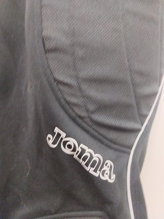 Pantalón de portero Joma, ideal para proteger las rodillas y las espinillas durante los partidos. Está nuevo y es perfecto para entrenar o jugar. - Marca: Joma - Color: Negro con detalles blancos - Talla: L - Incluye protecciones en rodillas y espinillas