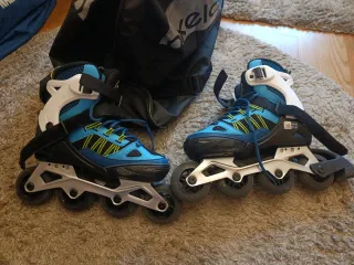 Patines en linea, talla 35-38, protecciones talla S, casco y bolsa de transporte