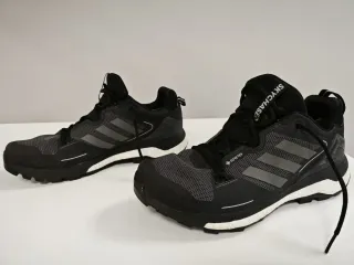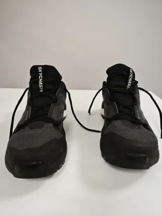 Zapatillas de trail running Adidas Terrex Skychaser 2 GTX en color negro. Diseñadas para ofrecer rendimiento y protección en terrenos difíciles. - Membrana GORE-TEX para impermeabilidad y transpirabilidad. - Parte superior de malla resistente a la abrasión. - Mediasuela Boost para un retorno de energía óptimo. - Suela de goma Continental™ para un agarre excepcional. Solo usadas una vez un ratito (regalo con error de talla )