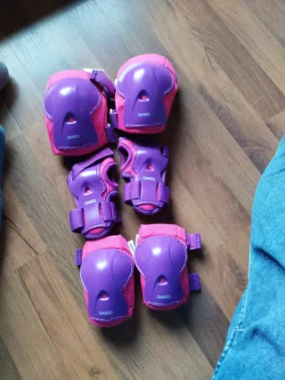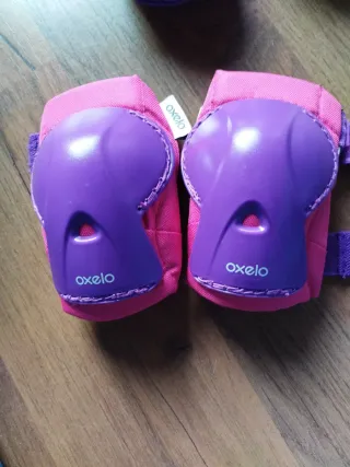 Set de protecciones infantiles de la marca Oxelo, ideal para patinaje o ciclismo. - Talla 2XS ,3 a 7 años, penúltima foto están las medidas. -Tiene un pequeño desperfecto se ve en la foto número 8 , por lo demás en perfecto estado. - Incluye rodilleras y coderas. - Color rosa y morado. - Cierre con velcro ajustable. - Una bolsa con las protecciones e instalaciones) Entrego en persona, hago envío.
