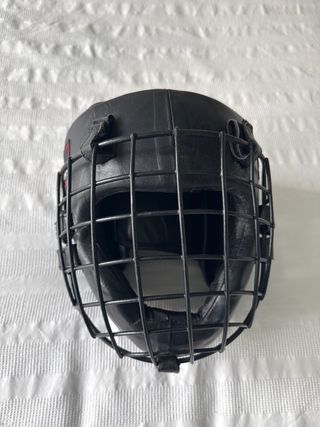 Casco de boxeo negro con protección completa para la cabeza. - Diseño de rejilla frontal. - Material exterior de cuero sintético.