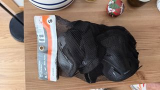 Set completo de protecciones Oxelo en talla XXS. Incluye rodilleras, coderas y muñequeras. - Color negro. - Cierre con velcro. - Incluye bolsa de malla.