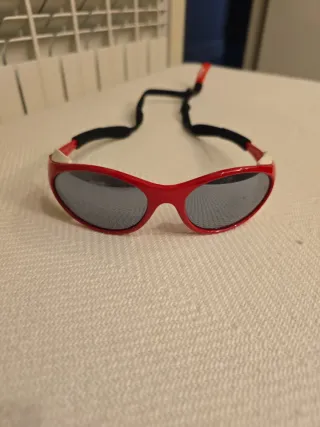Gafas de sol Uvex para niños, ideales para esquí. - Protección UV 400. - Montura roja y blanca. - Incluyen cinta de sujeción negra.