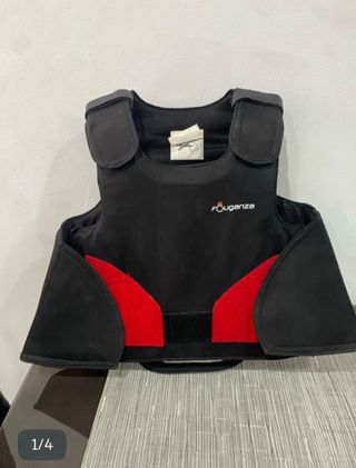 Chaleco de protección para equitación, talla 14-16. - Color negro con detalles en rojo. - Cierre de velcro. - Marca Fouganza.