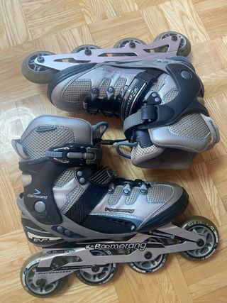 Se venden patines Boomerang junto con dos juegos completos de protección. - Incluye patines talla 39/40 ajustables. - Dos juegos de protección (muñecas, codos y rodillas). Marca Boomerang. Tallas S/M y M/L. Tienen algún roce de haberse usado pero está todo como nuevo.