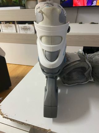 Set completo de patines en línea talla 39 + protecciones (rodilleras, coderas y muñequeras), listo para usar y en perfecto estado. Ideal para principiantes o para quien quiera empezar con seguridad sin gastar de más: compras todo de una vez y sales a patinar. Estan nuevos. ¡Tienen 30 min de uso! Incluye: - Patines en color gris, blanco y naranja. - Protecciones completas: rodilleras + coderas + muñequeras (protección de manos). - Cierres de velcro en las protecciones, fáciles de ajustar y cómodos.