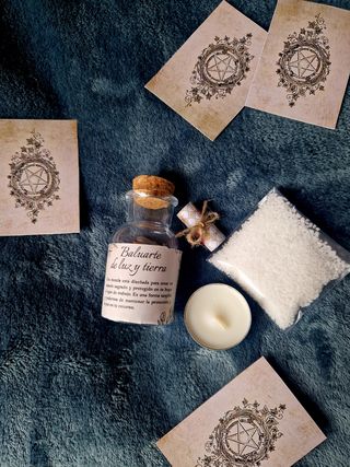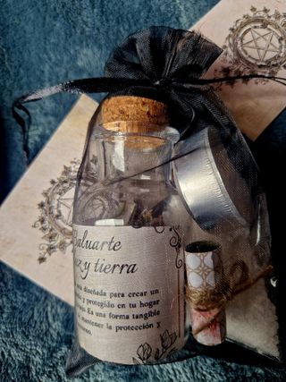 Este frasco protector aúna la fuerza purificadora de la sal, la claridad de la vela y el poder protector de las diversas hierbas que contiene. Es una forma tangible y poderosa de proteger tu espacio y a los que quieres. Contiene: Mezcla de diversas hierbas, cuarzo blanco, un pequeño papel en dónde escribir nuestro propósito, una bolsita de sal, 1 vela blanca y una tarjeta con el hechizo a realizar. Envíos certificados +8€. NO NEGOCIO POR WALLAPOP (BZUM Y ENVIO CERTIFICADO O PAGO EN MANO). NO CAMBIO. NO NEGOCIO EL PRECIO. NO CORRO CON LOS GASTOS DE ENVIO. #Hechizos#wicca#magiaverde#hierbasmagicas#rituales#regalos#magia#spells#brujas