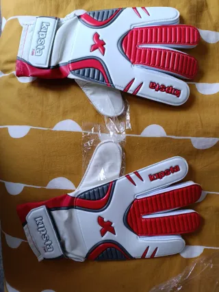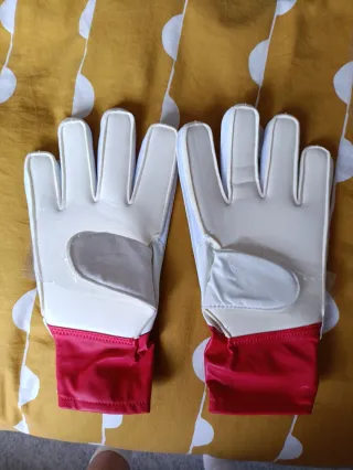 Guantes de portero Kipsta F300 en color blanco, rojo y gris. - Diseño con protecciones en los dedos. - Cierre de velcro en la muñeca. - Palma con relieve para mejor agarre.