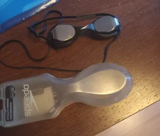 Gafas color azul, amarillas. Mascara protección de natación con cristal claro . Fue un regalo y no las ha usado.
