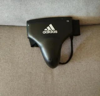 Protector genital de la marca Adidas, talla L. Diseñado para ofrecer protección. - Color negro. - Logo de Adidas en blanco. - Certificación CE.
