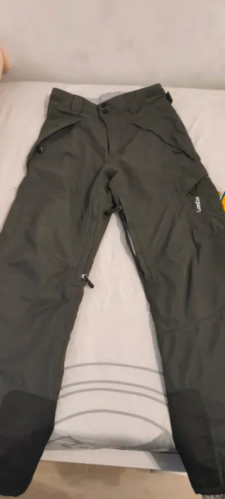 Pantalón de esquí o snowboard en color verde oscuro. Diseñado para ofrecer comodidad y protección en la montaña. - Cremalleras laterales para ventilación. - Bolsillos con cierre. - Refuerzos en los bajos. - Talla S