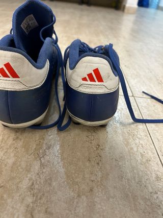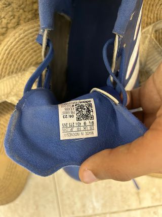 Botas de fútbol Adidas. - Talla 9 US. - Fabricadas en Indonesia. - Color azul.