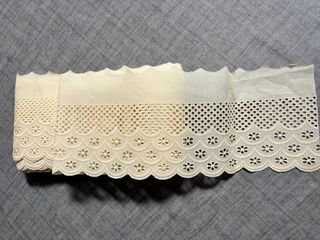 Cinta o Tira bordada premium para textil. Confeccionada en España. 11cm de ancho total por 7,5m de largo. Si hay que enviar a otro lado el envío sería aparte por correos postal o a elegir.