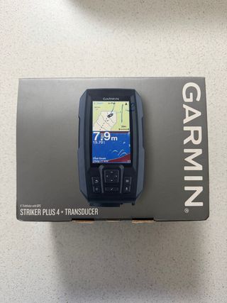 Sonda Garmin Striker Plus 4 con transductor, sin usar. - Pantalla 4.3'' pleno sol e interfaz de usuario intuitiva. - GPS integrado para marcar waypoints, crear itinerarios y visualizar la velocidad. - Incluye doble haz que funciona en modo CHIRP tradicional para imágenes nítidas. - La función Quickdraw™ Contours te permite crear tus mapas de pesca detallados con curvas batimétricas representadas cada 30 cm y almacenar hasta 8000 km².