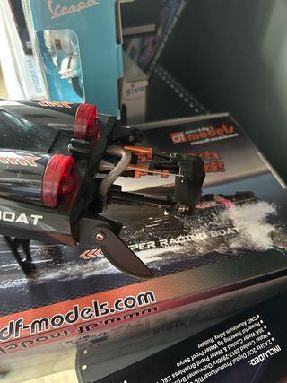 Barco de radiocontrol de alta velocidad, modelo Super Racing Boat. - Diseño deportivo en color negro. - Potente motor Brushless Power. - Sistema de refrigeración por agua. - Función de auto-enderezamiento. - Luces LED integradas.