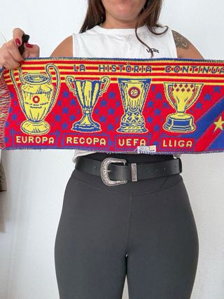 Bufanda de colección del Fútbol Club Barcelona. prenda antigua y muy bien conservada. - Diseño con el escudo del club. - Colores azul y rojo. - Detalles de estrellas.