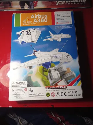 Puzzle 3D del avión Airbus A380. Ideal para coleccionistas y aficionados a la aviación. - Gran pieza de decoración. - Fácil de montar. - Educativo. - No requiere herramientas. - Apto para mayores de 3 años.