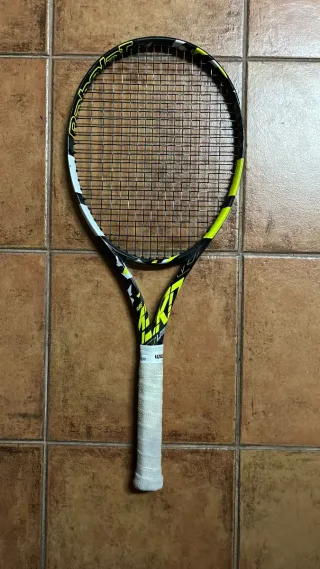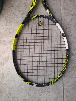 "GRAN OFERTA PURE AERO LITE 270g" Dispongo de esta Pure Aero Lite de 270 gramos. La doy con el cordaje puesto nuevo (más de 20 euros) y con el overgrip recién puesto tambien. Lleva 24 kg de tensión y es un rpm blast de 1.25mm. La compre a principio de 2025 por más de 200 euros. Tiene horas, pero está bien cuidada. Evidentemente algún roce del uso tiene pero es mínimo y no afecta en nada. El puño es el 3 y es de la talla adulto. Es una oportunidad perfecta para juniors que pasan a talla adulto o para alguien intermedio que busca el efecto de la gama aero. NO NEGOCIABLE tenis, babolat, raqueta, wilson, carlos alcaraz, pure aero