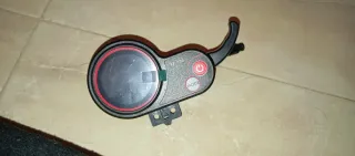 Display para patinete eléctrico, modelo TF-100. Cuenta con un botón de encendido/apagado y un botón de modo. - Pantalla circular. - Botón de encendido con símbolo de energía. - Botón de modo.