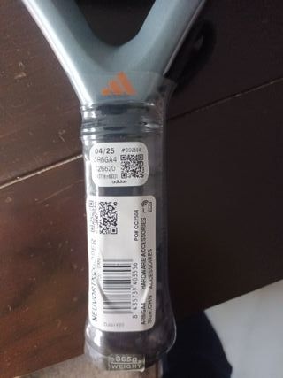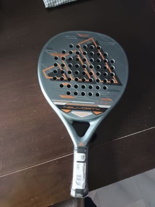 Pala de pádel Adidas modelo Nelvortx, completamente nueva. - Diseño moderno en gris y naranja. - Peso: 345g.