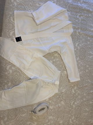 Traje de judo blanco, ideal para entrenamientos y competiciones. - Tejido resistente y cómodo. - Cierre cruzado tradicional.