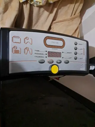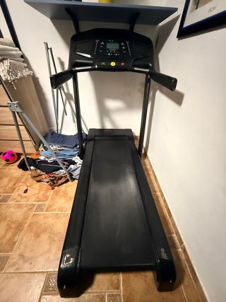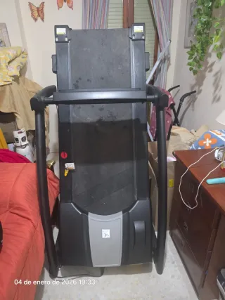Cinta de correr de la marca Fitfiu. - Diseño moderno en color negro con detalles en rojo. - Consola con pantalla digital. - Soporte para botellas. -Funciona correctamente. -Algo ruidosa.