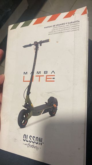 Patinete eléctrico Olsson Mamba Lite en color verde y naranja. Ya no lo necesito, va perfecto, cambie las ruedas hace poco, incluye cargador - Diseño moderno y deportivo. - Manillar ajustable en altura. - Ruedas con detalles naranjas. - Guardabarros trasero con luz roja.