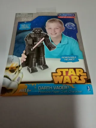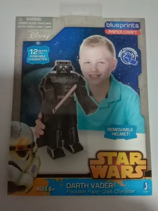 Figura de papel de Darth Vader de Star Wars, lista para armar. Es un personaje poseable. Sin abrir - Mide 12 pulgadas de alto. - Incluye casco removible. - Apto para mayores de 6 años.