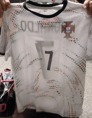Camiseta de fútbol de Portugal con el número 7 y el nombre CR7. - Diseño con escudo de Portugal. - Talla L.
