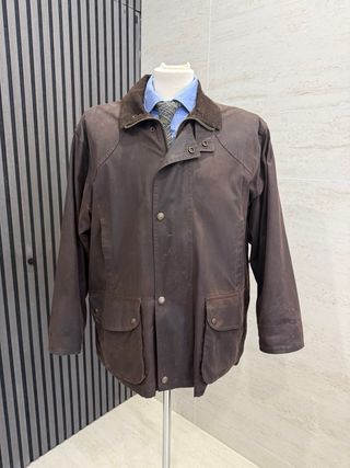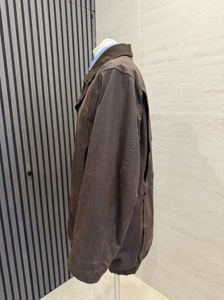 Chaqueta encerada impermeable de caza de Decathlon. - Talla M. - Color marrón oscuro. - Cuello de pana. - Cierre de cremallera y botones a presión. - Dos bolsillos inferiores con solapa. Color cacao, lavada y encerada en tintorería Estilo Barbour para caza o campo, elegante y funcional con múltiples bolsillos, cremallera posterior, detalles en pana. Atención ‼️ Tiene un pequeño roto en la costura del bolsillo derecho de unos 7 mm ( penultima foto). Medidas: De sisa a sisa: 53 cm Ancho: 60 cm Largo: 73 cm Largo de manga: 58 cm