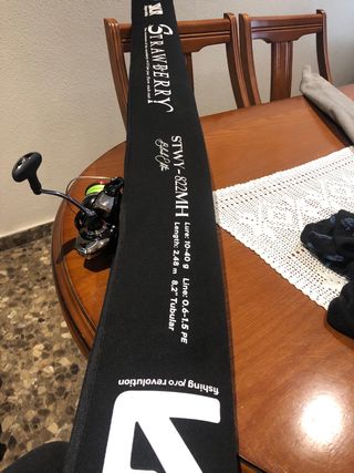 Equipo spining medio ,completo Caña de pescar STWY-822MH de la línea Strawberry, edición Black. - Modelo: STWY-822MH - Marca: Strawberry - Color: Black - Longitud: 2,48 m - Acción para señuelos (Lure): 10-40 g - Línea recomendada (Line): 0.6-1.5 PE - Tipo: Tubular Carrete daiwa fuego 300 Trenzado X8 upgrade 0,06 ...tags shimano, stella, twinpower,gloomis,aspire,spin