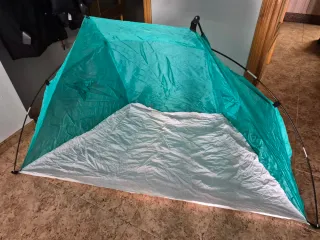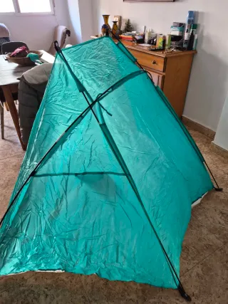 Tienda de playa con un diseño ligero y fácil de montar. Perfecta para protegerse del sol. - Color turquesa y blanco. - Estructura con varillas flexibles. - Pesa 750 gr.
