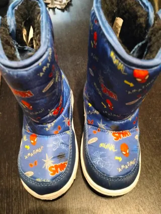 Botas de nieve para niños con diseño de Spiderman. Perfectas para mantener los pies calientes y secos en días fríos. - Diseño multicolor con Spiderman. - Cierre de velcro lateral. - Suela blanca antideslizante. - Talla 26
