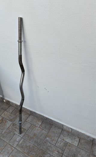 Barra de pesas con diseño curvado, ideal para ejercicios específicos. - Material metálico. - Superficie moleteada para mejor agarre en los extremos.