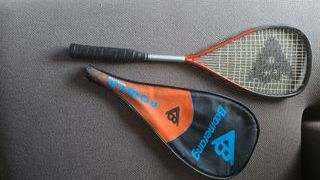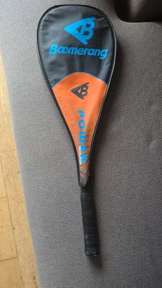 Raqueta de squash Boomerang Power Revolution. En buen estado. - Diseño con detalles en naranja y azul. - Mango negro para un agarre firme. Grip en buenas condiciones.