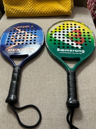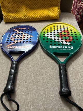 Se venden dos raquetas de pádel, una Dunlop Winner II y una Boomerang. - Raqueta Dunlop Winner II: Elstomer Graphite, Superlight Graphite. - Raqueta Boomerang: Beer Body 50-5B, Graphite Systems. CON SEÑALES DE USO ( ver fotos )