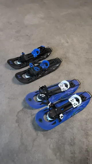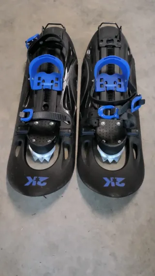 Raquetas de nieve para adultos de la marca 2K. Diseñadas para ofrecer comodidad y buen agarre. - Color negro y azul. - Fijaciones ajustables. - 50€ la pareja - 95€ las 4
