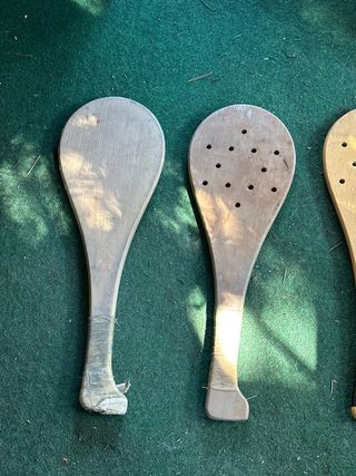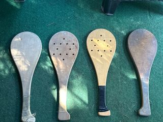 Conjunto de cuatro raquetas de madera para pelota vasca. USADAS. En buen estado - Material: Madera. - Diseño clásico. - Mango con agarre.