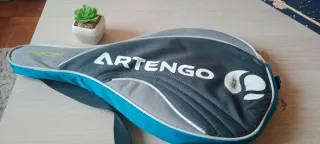 Se vende pack de dos raquetas de tenis de la marca Artengo, ideal para iniciarse en el deporte. Incluye una funda para transportarlas cómodamente. Una de ellas está sin usar. También tiene una pelota. - Color: Rojo y blanco. - Incluye funda. - Marca: Artengo.