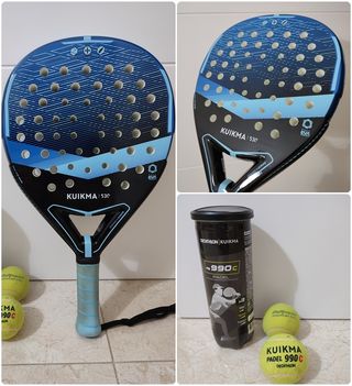 Raqueta de pádel Kuikma 530 en buen estado, con solo 3 usos. - Diseño moderno en negro y azul. - Ideal para jugadores que inician este deporte. - Ráqueta ligera, compacta y en perfecto estado.
