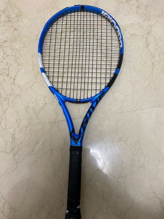 Raqueta de tenis Babolat Pure Drive. Peso 300gr Puño tamaño 5 Cordaje y Overgrips nuevos sin uso. Roces del uso en el protector superior del marco, pero está como nueva. Muy poco uso. Viene con funda oficial Babolat. La vendo porque el puño es muy ancho, pensada para manos grandes. PRECIO NEGOCIABLE.