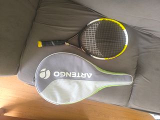 Raqueta de tenis Artengo en buen estado aunque con marcas como se aorecia en la segunda fotoideal para iniciarse. Incluye funda protectora. - Raqueta de tenis Artengo. - Funda de transporte Artengo.