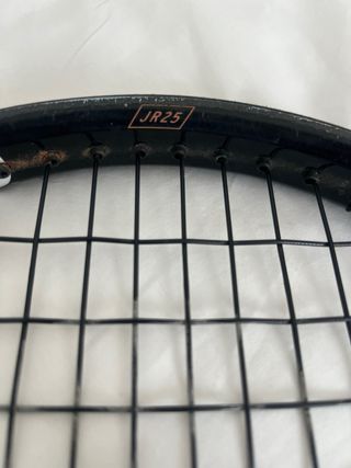 Raqueta de tenis de la marca HEAD. - Marco negro y blanco. - Empuñadura naranja. - Tamaño JR 25