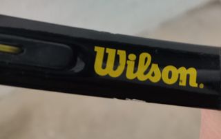 Raqueta de tenis Wilson. - Marco de carbono. - Cuerdas amarillas. - Empuñadura negra.