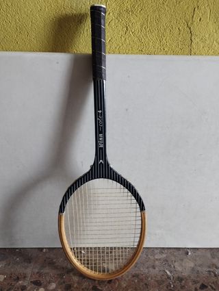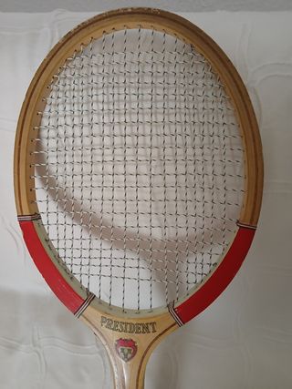 Raqueta antigua de madera todo de origen,está como el primer dia