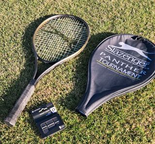 Raqueta de tenis Slazenger Panther Tournament. Bien cuidada. (Ver fotos). - Construcción en grafito y aluminio. - Incluye funda. - Se adjunta un pack de 3 overgrips Artengo a estreno. - Incluye Colección 6 DVD'S "Finales de infarto".