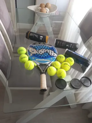 Raqueta de tenis Babolat en excelente estado, casi nueva. Viene con un set de 6 bolas. - Marca: Babolat - Incluye 6 bolas de tenis.
