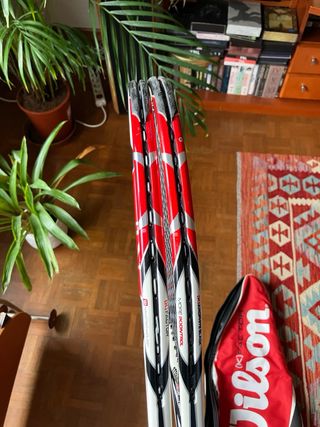 Se venden dos raquetas de tenis Wilson K Six One Team 95. Una con poco uso y otra con las marcas normales del juego. Ideales para el aficionado intermedio. Solo venta en persona. - Incluye funda para las raquetas.