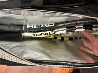 Conjunto de fundas para raquetas de tenis o pádel. - Dos fundas de la marca Babolat, modelo Aero. - Dos fundas de la marca Head.
