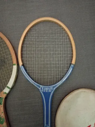 Tres raquetas de tenis antiguas, en buen estado. Ideales para coleccionistas o amantes del tenis clásico. - Son tres raquetas de madera. - Tienen un diseño clásico y elegante. - Se encuentran en buenas condiciones, considerando su antigüedad.